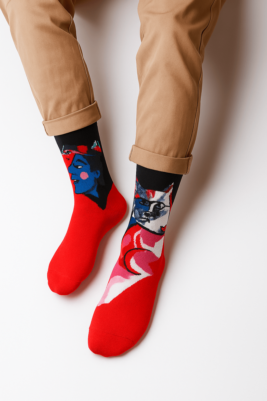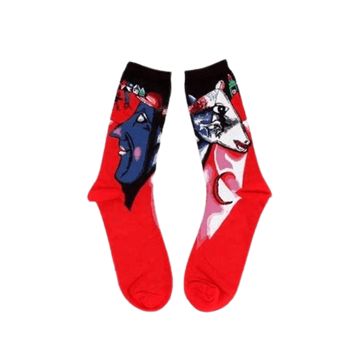 Step into the whimsical world of Marc Chagall with our "I and the "Village"-inspired socks. These high-quality socks feature a vibrant print of Chagall's iconic painting, capturing the artist's unique style and vision.