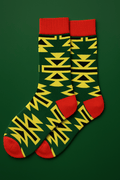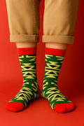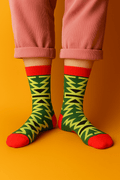 These modern art socks are the perfect way to add a pop of color and style to your outfit! With a vibrant green and red pattern, these socks are sure to catch everyone's attention. Made from high-quality materials, they are not only fashionable but also comfortable to wear. Whether you're dressing up for a special occasion or just want to add some flair to your everyday look, these socks are a must-have accessory. So why settle for plain socks when you can make a statement with these eye-catching green and red patterned socks?